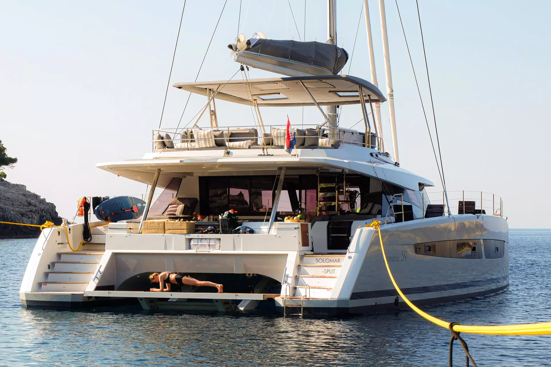 Solomar, a new Fountaine Pajot Samana 59, elevates the crewed charter experience in Croatia. Selected by an owner with a refined sense of detail and equipped to meet the highest standards of comfort and service, this catamaran is an exceptional choice for guests seeking a premium sailing holiday.
