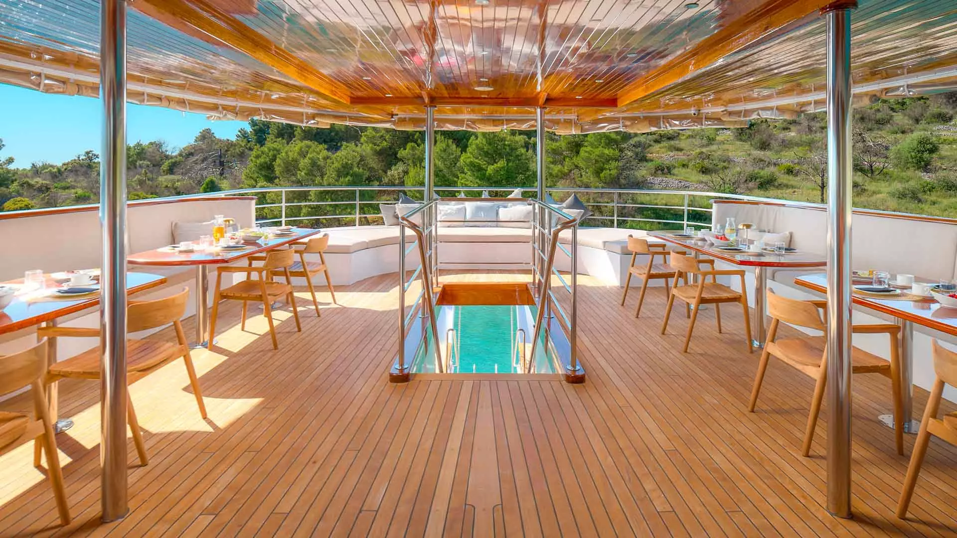 Bellezza, the 52-meter luxury cruiser built in 2019, sets the standard in Croatian luxury cruising. With space for up to 38 guests across 18 stylish cabins, she ensures luxury and comfort. Guests can unwind on the vast sun deck and jacuzzi, or enjoy the foldable bathing platform with showers at the stern. Interior of Bellezza boasts individually controlled air-conditioned cabins, each with a private bathroom, LCD TV, safe, and daily towel service. With a dedicated 10-member crew, Bellezza offers extraordinary cruising experience.